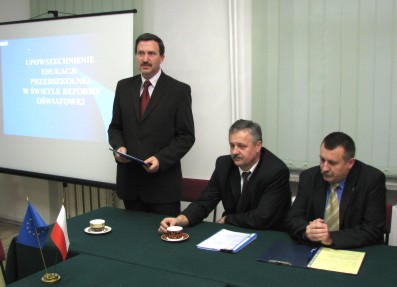 Jerzy Kiszkiel, Podlaski Kurator Oświaty przedstawił prelekcję nt. Upowszechnianie edukacji przedszkolnej w świetle reformy oświatowej. Główne poruszane zagadnienia to: